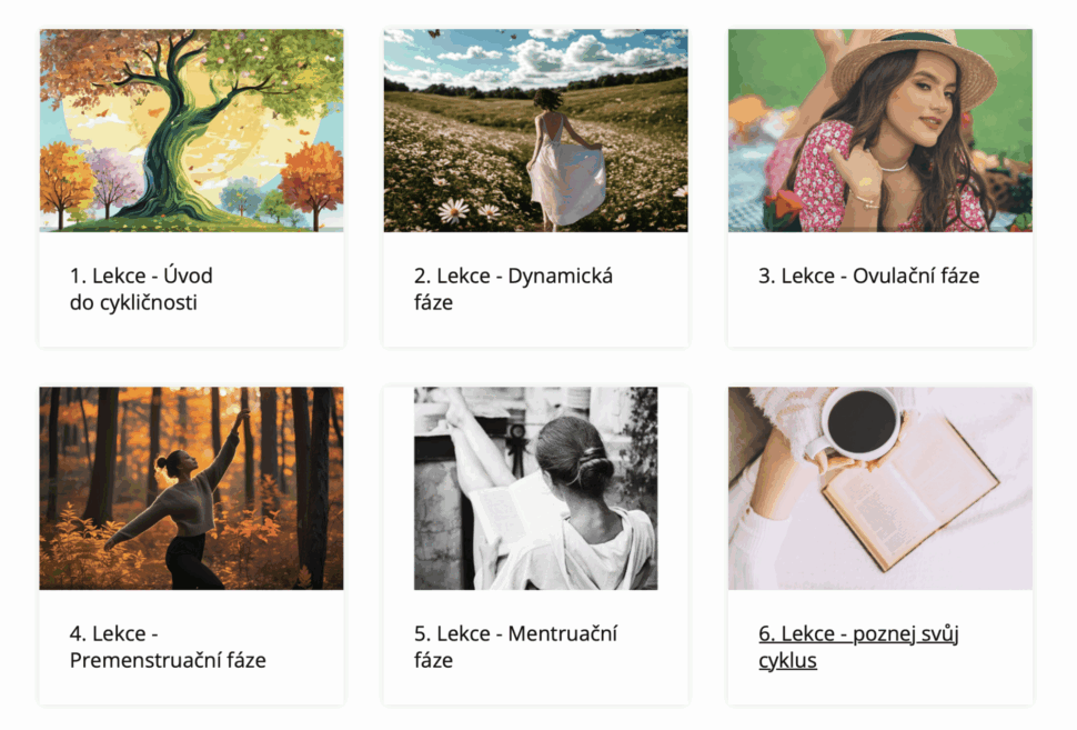 • 6 lekcí plných cykličnosti a propojení se s ženskou esencí