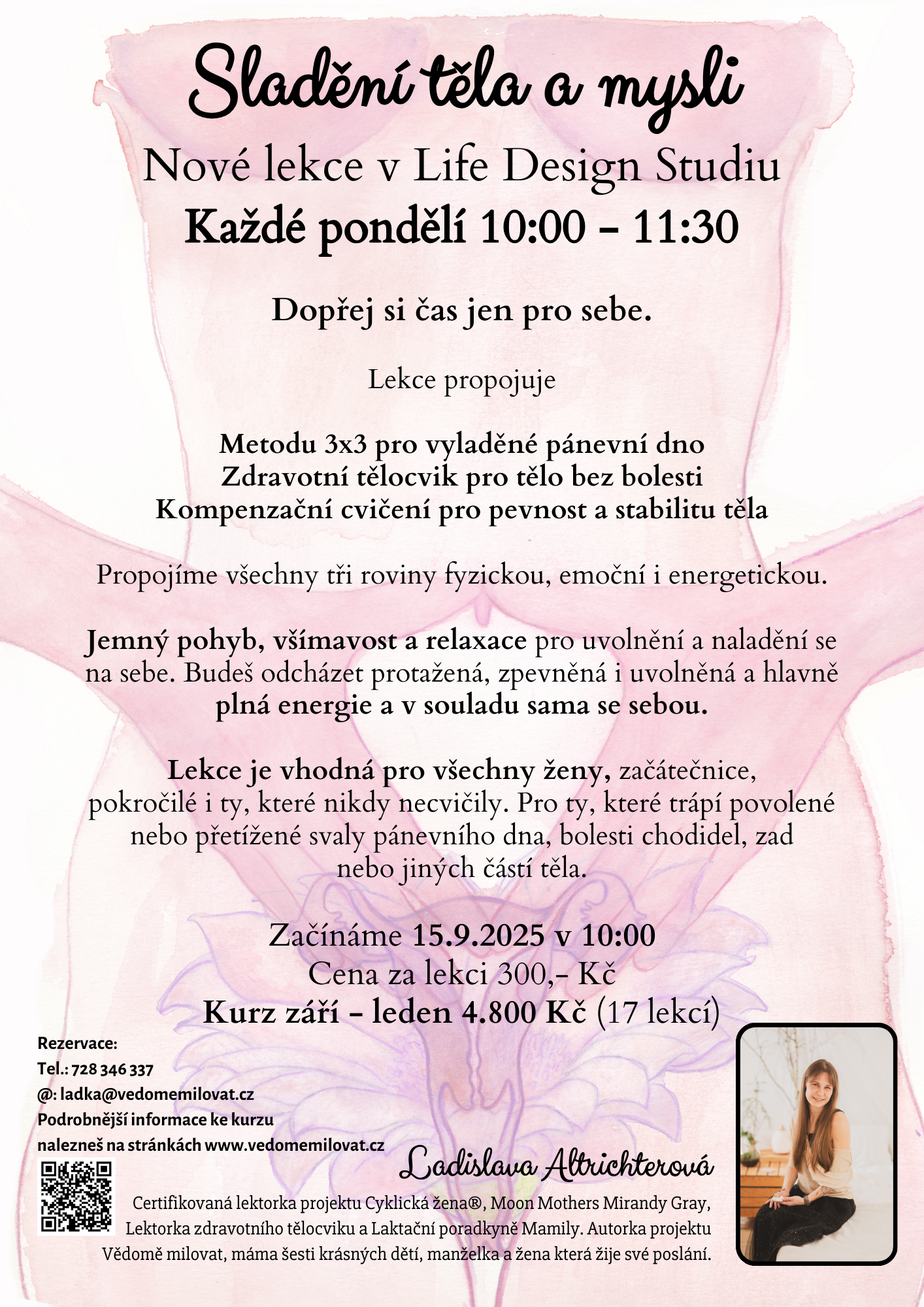 - cvičební prvky Metody 3x3 Školy pánevního dna a Zdravotního tělocviku